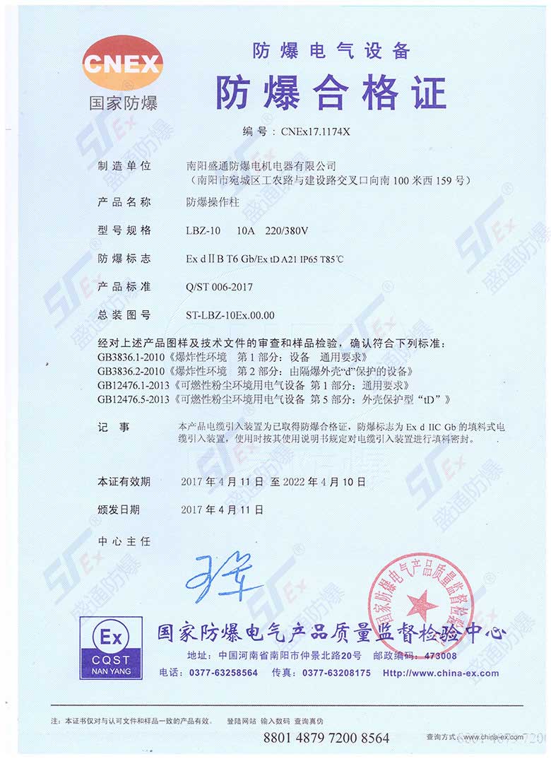 防爆操作柱防爆標志:Exd IIB T6 Gb